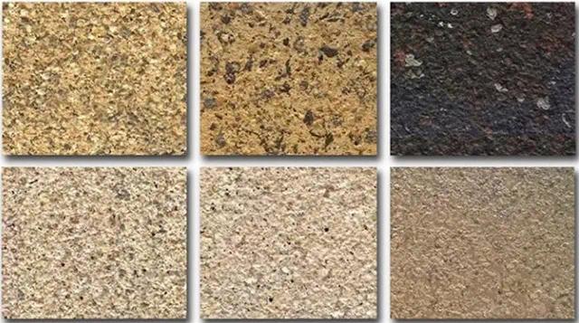 水包砂:雖然表面也是凹凸感狀態(tài),但因為乳液將彩砂完整包裹,并且彩砂間有效成膜,灰塵僅是浮在表面,下雨后,會將回程沖洗干凈。